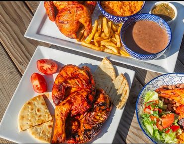 50 piezas de Pollo rostizado , arroz, frijoles, tortilla recien hecha, dos tipos de salsas